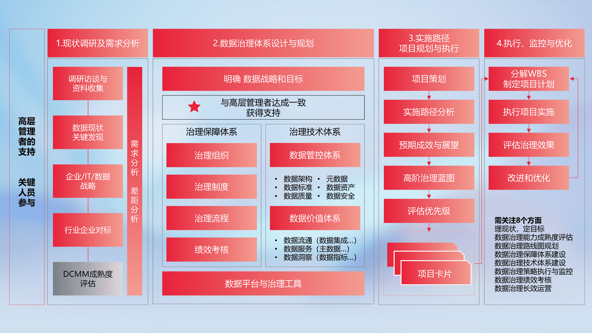 制定并执行统一的数据标准,,规范数据定义和格式,,,消除冗余和不一致性,,,,实现跨部门和跨系统的数据一致性,,为企业提供标准化的数据基础。。